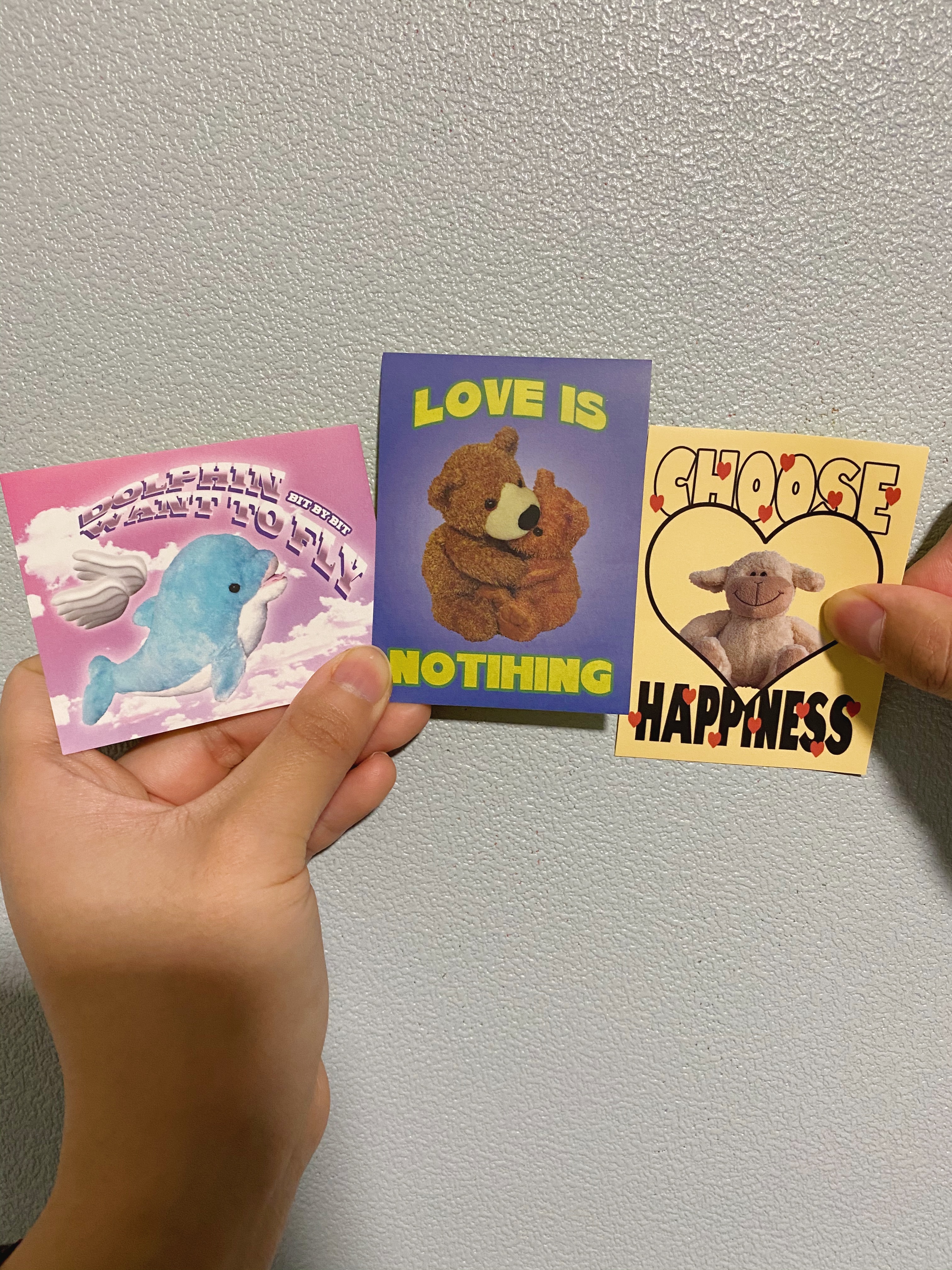 두꺼운종이에 귀여운 그림이 프린팅되어있어요.